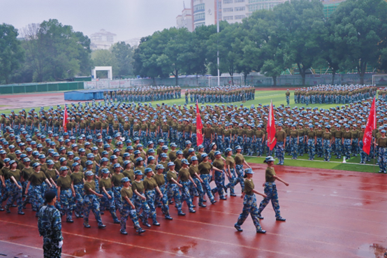 上午8:30,在国歌慷慨激昂的旋律中,鲜艳的五星红旗冉冉升起,拉开了军训总结表彰大会的帷幕。