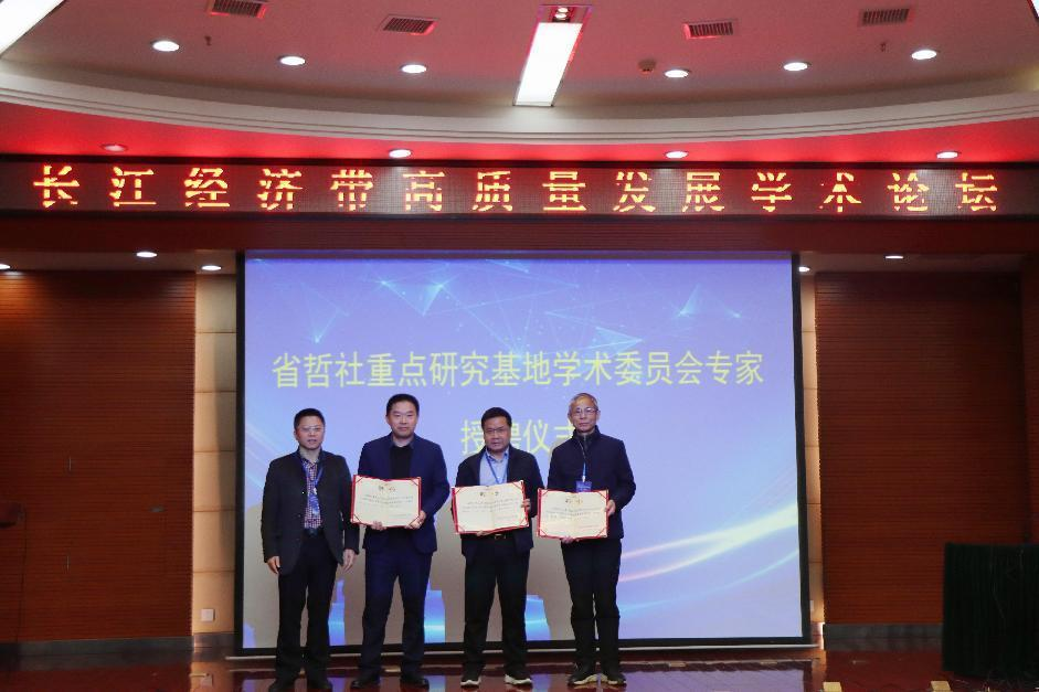 会议期间还举行了省哲学社会科学重点研究基地江西长江经济带研究院专家授聘仪式和长江经济带高质量发展系列丛书之一《江西融入长江经济带建设研究》新书发布仪式,吴志军受聘基地学术委员会主任,唐常春、宋志龙受聘基地兼职研究员。