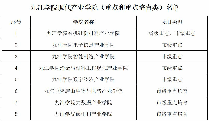 近两年,自国家和省市启动现代产业学院建设以来,作为全省应用型本科高校联盟牵头单位,我校提早谋划,大抓落实,按照《江西省高水平应用型本科高校建设指导标准(试行)》等文件关于“现代产业学院不低于二级学院三分之一”的目标要求,紧紧围绕江西省制造业重点产业链现代化建设“1269”行动计划和九江市制造业“9610”工程,依托学校优势学科和专业(群)积极组建现代产业学院,与湖口县、永修县、瑞昌市、濂溪区、柴桑区、九江经济技术开发区6个县市区及30家企业,共建10个校级现代产业学院,2023年已获批九江市重点现代产业学院5个和重点培育类现代产业学院3个。