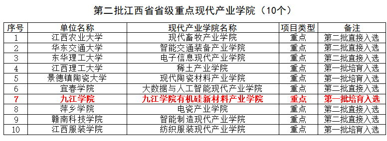 2月2日,江西省教育厅公布了第二批省级重点现代产业学院名单。全省10个现代产业学院入选第二批省级重点现代产业学院,我校有机硅新材料产业学院名列其中。