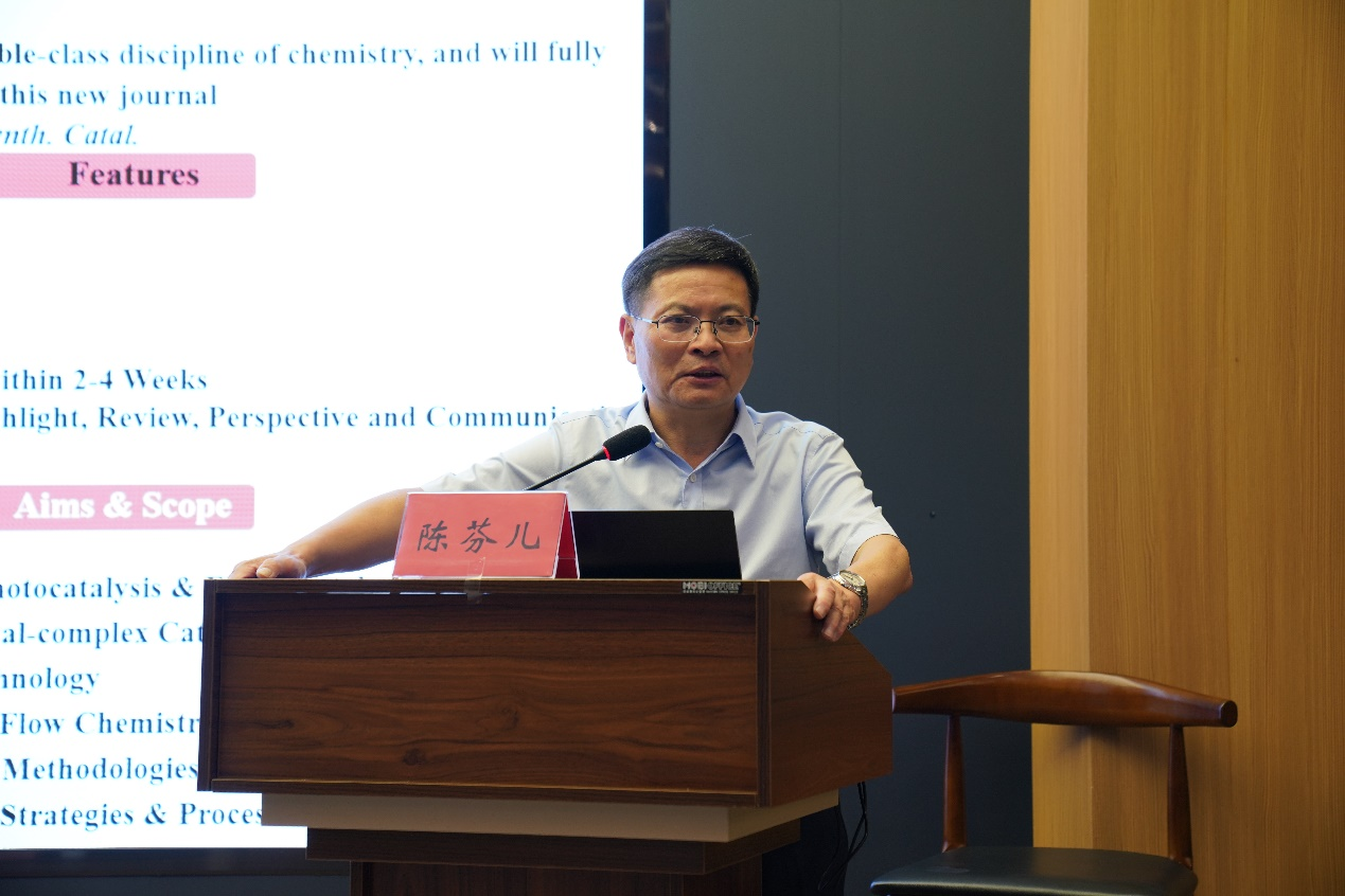7月2日下午,中国工程院院士、江西师范大学校长、复旦大学博士生导师陈芬儿教授应邀为我校师生作题为《Stereocontrolled total synthesis of (+)-biotin through a chiral-auxiliary strategy - From batch to end-to-end continuous-flow chemistry》的学术报告。报告会由校长陈小林主持,江西师范大学副校长项国雄,我校副校长严平,化学化工学院、资环学院、临床医学院和药生学院相关专业师生在大学科技园报告厅现场聆听了院士的精彩报告。