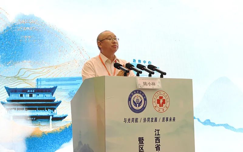 陈小林致辞,他指出,九江学院附属医院要顺应新时代医疗卫生事业的新要求,不断深化内部改革,强化医疗技术创新,提升医疗服务质量,努力构建集预防、诊疗、康复于一体的全方位、全周期健康服务体系,强化医院信息化建设,优化患者就医体验,让医疗服务更加便捷、高效、人性化。
