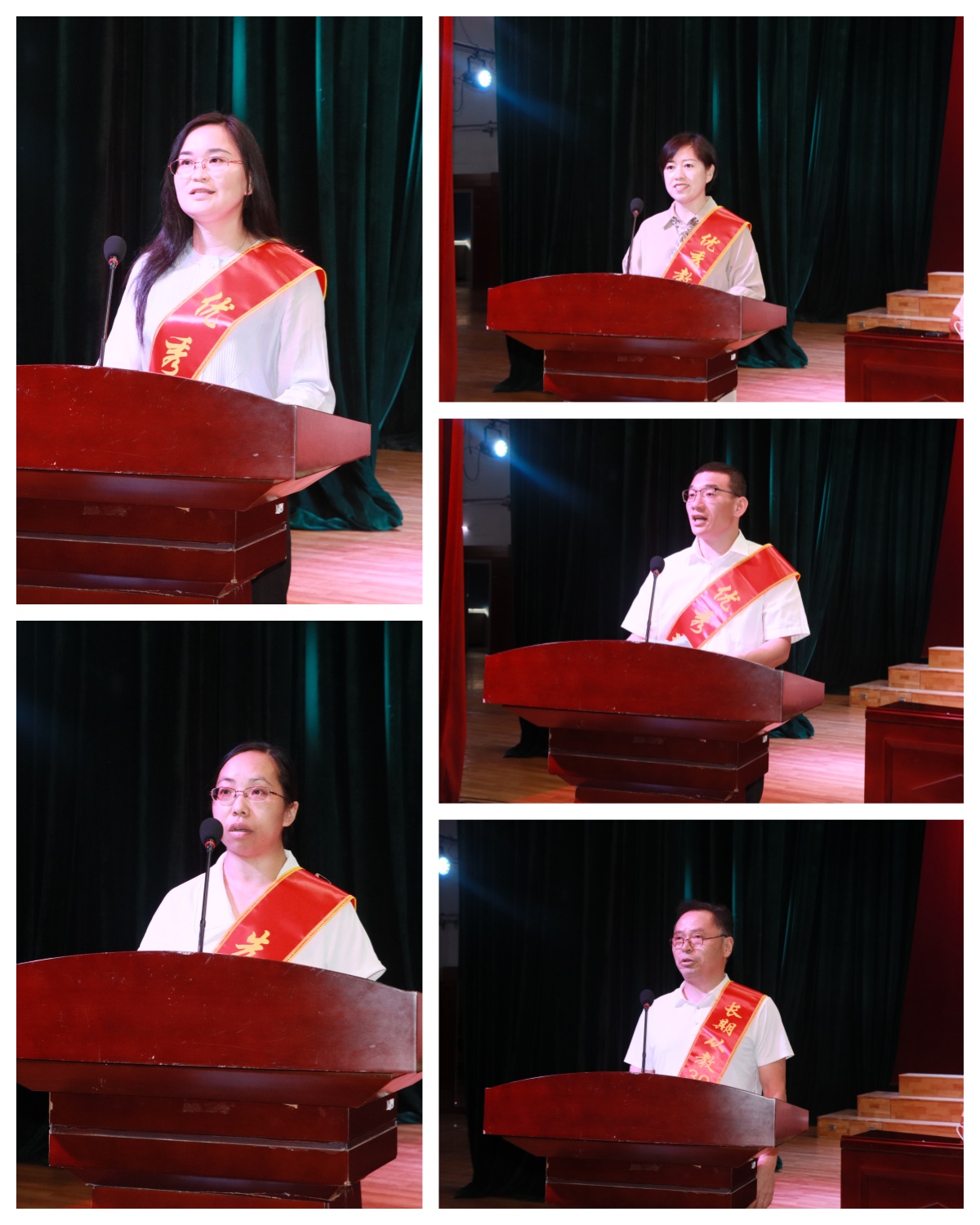 优秀教师代表、经济学院张敏,优秀教育工作者代表、教学质量监控与评估处杨丽娜,优秀班主任代表、材料科学与工程学院孙国栋,先进集体代表、管理学院人力资源管理教研室主任张科静老师,长期从教30年教师代表、计算机与大数据科学学院朱顺文带着自身从教的感人故事,走上讲台,用真挚的情感和生动的语言,与在场的师生们分享教育的喜悦与收获。