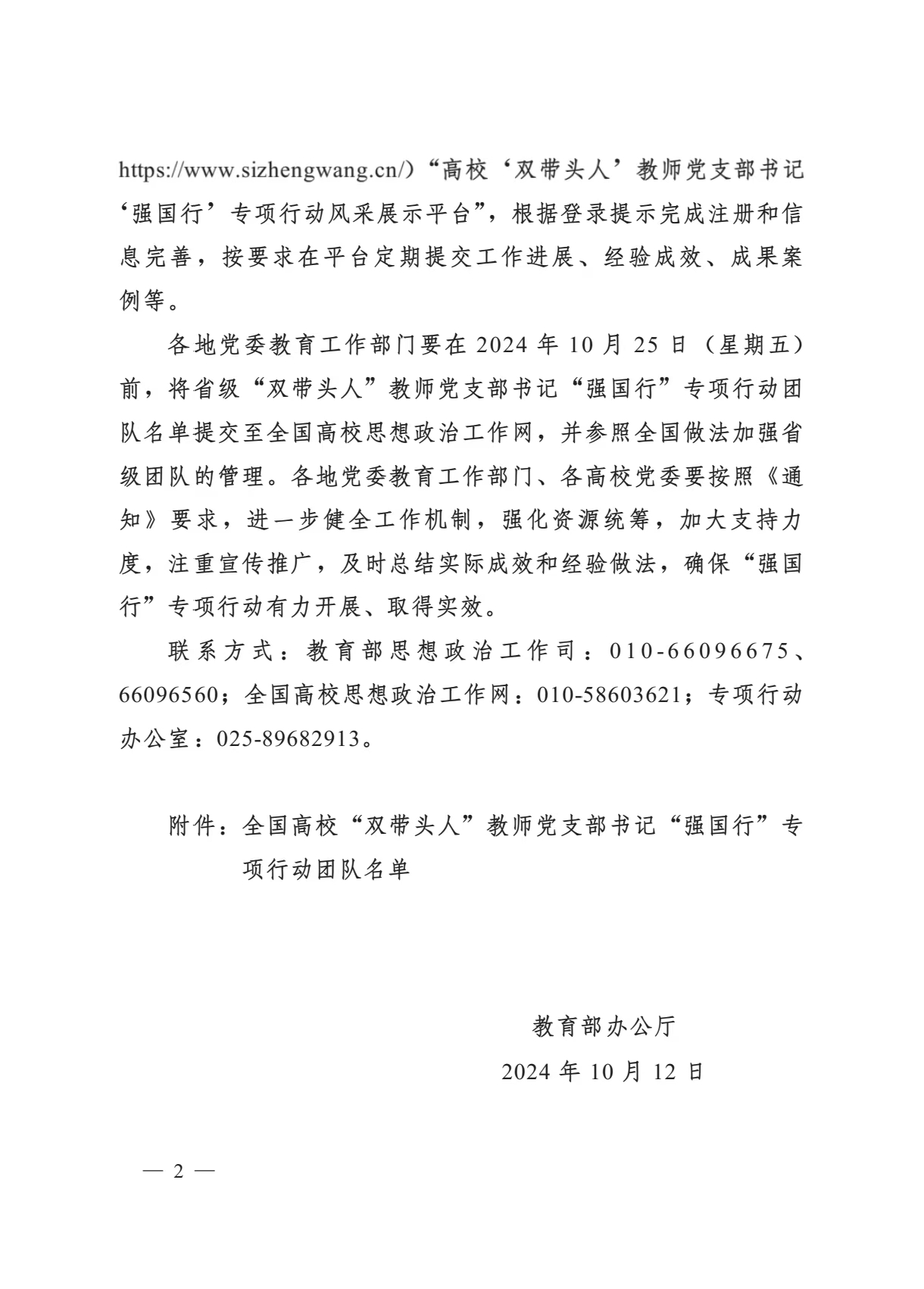 高校“双带头人”教师党支部书记“强国行”专项行动,是教育部为深入贯彻落实立德树人根本任务,推动“双带头人”教师党支部书记培育工程而开展的创新举措,旨在引导广大高校师生在推进中国式现代化、助力国家强盛和民族复兴的伟大事业中展现新担当、做出新贡献。