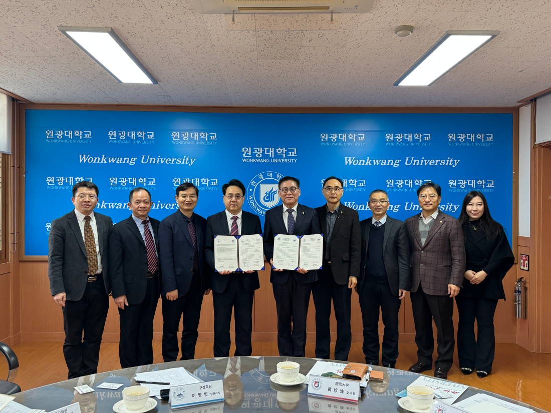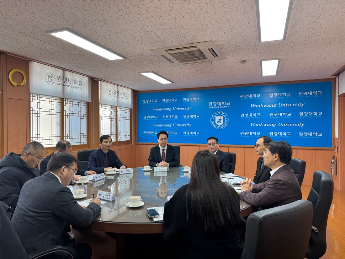 在韩国访问期间,代表团一行先后访问了圆光大学和檀国大学。在圆光大学,李明斌回顾了两校2017年签订合作协议以来的良好交往,并表示尽管疫情一度阻碍了合作进程,双方今后应加强交流,推动合作再上新台阶。圆光大学校领导黄珍洙对此高度认同,并表示期待双方在多领域取得更大成果。
