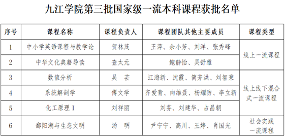 喜报:我校新增6门国家级一流本科课程
