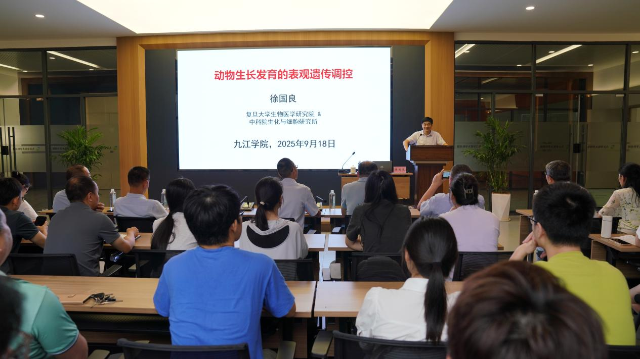 9月18日,中国科学院院士、复旦大学生物医学研究院及中国科学院生物化学与细胞生物学研究所研究员徐国良教授应邀来校,为九江学院师生带来了一场题为“动物生长发育的表观遗传调控”的精彩学术讲座。讲座开始前,九江学院党委委员、副校长查振华会见了徐国良教授。本次讲座由九江学院党委委员、副校长王殿元主持。学校基础医学院、药学与生命科学学院相关师生代表等参会聆听。