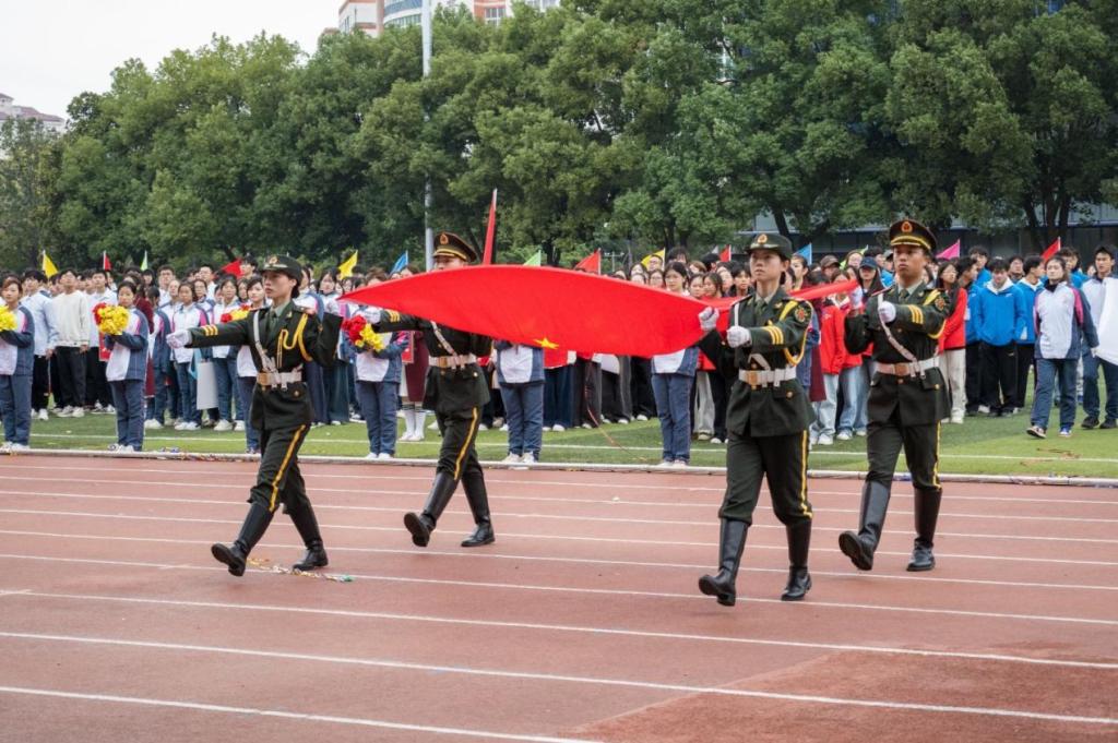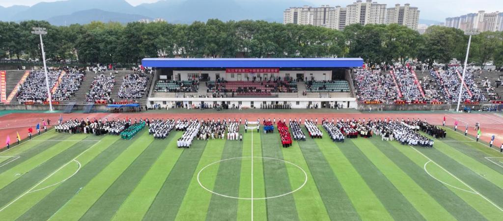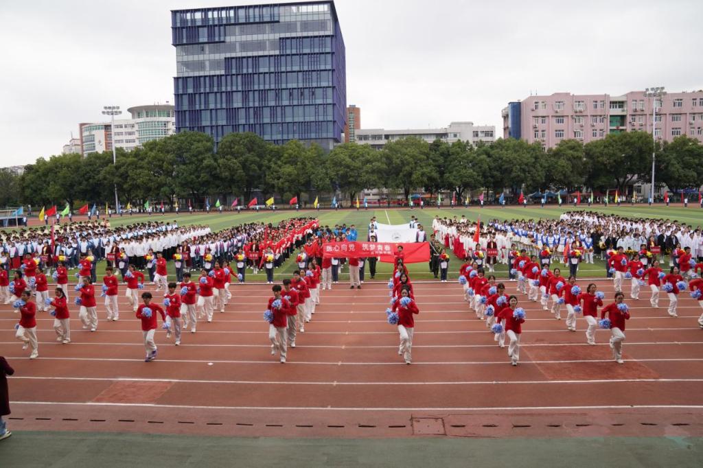 在雄壮激昂的乐曲声中,国旗护卫队、鲜花方队、彩旗方队、裁判员方队、各二级学院方队以及研究生方队、教职工方队依次入场。他们以整齐的步伐、昂扬的姿态走过主席台前,充分展现出九江学院师生的活力与风采,二级学院各具特色的精彩亮相也引起了全场观众的热烈反响,场上的掌声与喝彩声连绵不绝。