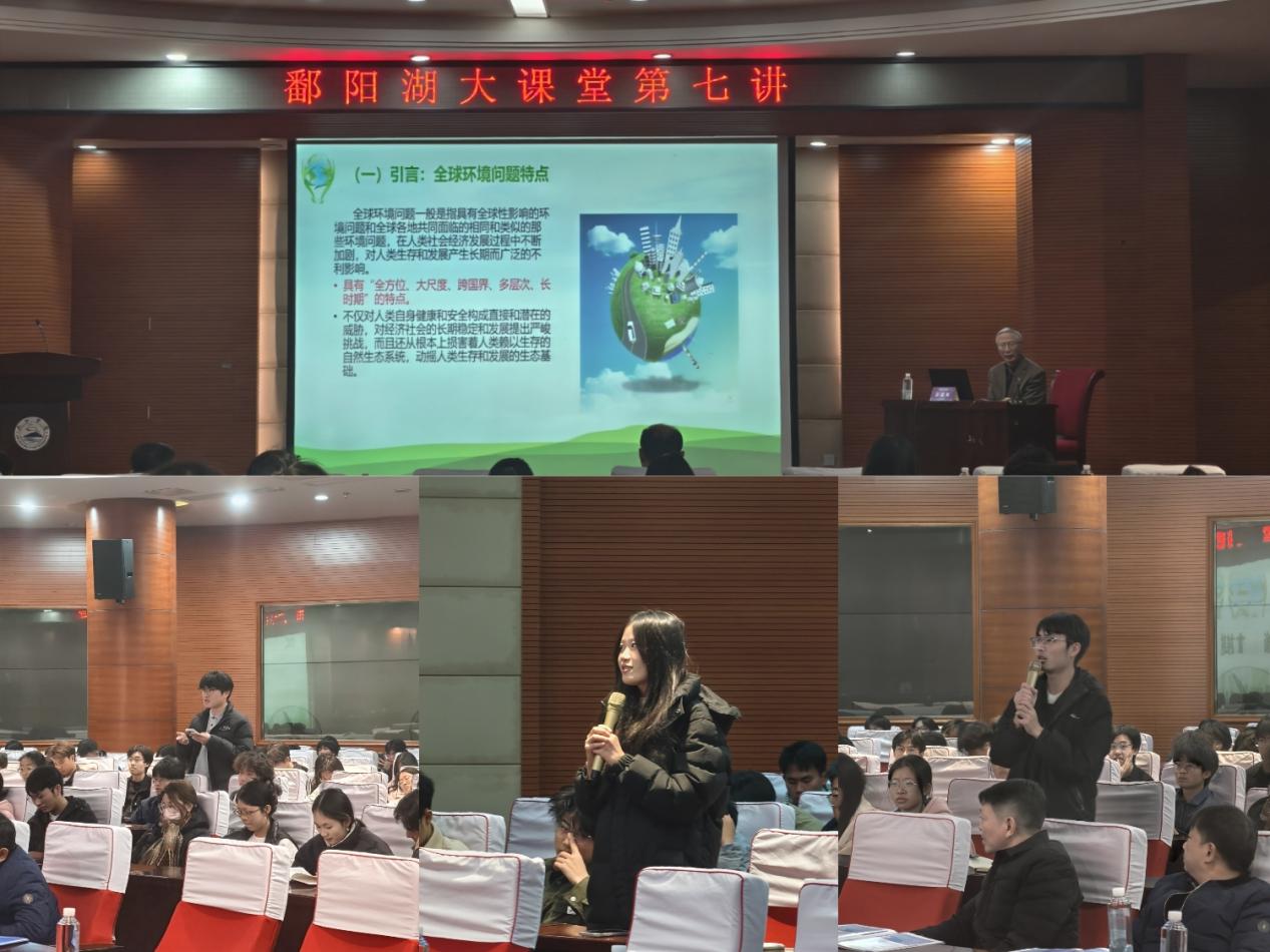 鄱阳湖大课堂(第7讲)由中华环保联合会副主席、联合国环境规划署原驻华代表涂瑞和先生主讲,来自资源环境学院、药学与生命科学学院、机械与智能制造学院、建筑工程与规划学院、管理学院、旅游与地理学院等学生代表聆听了报告。涂瑞和先生还与现场学生进行了深入互动交流。