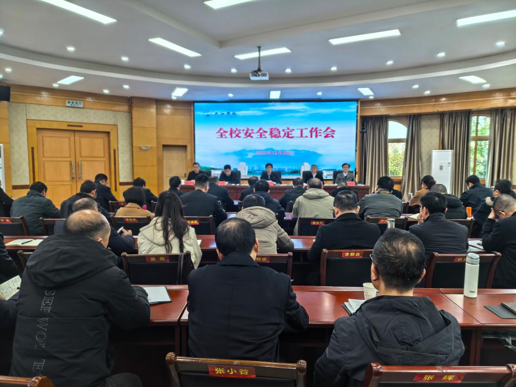 吴维勇分析了我校当前安全稳定形势,并对下一阶段重点工作作出部署。他强调,要坚决扛起政治责任,充分认识安全稳定工作的极端重要性,以“时时放心不下”的责任感守牢安全底线;要迅即开展拉网式排查,对校园各领域、各环节风险隐患进行全面梳理,确保不留死角、不存盲区;要扎实推进精准化整改,对排查出的问题建立台账、明确时限、责任到人,确保整改彻底到位;要全面加强宣传教育,多渠道、多形式提升师生安全意识和自我防护能力;要着力健全长效机制,不断完善制度体系,强化日常监管,推动安全工作常态化、规范化;要严格执行值班值守,确保信息畅通、响应迅速、处置有力,坚决贯彻落实省委、省政府决策部署,全力抓好岁末年初安全稳定各项工作。