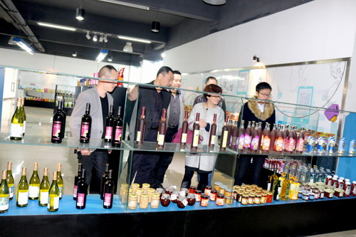 随后,韩院长、杨书记一行在王玉亮董事长的陪同下参观了万亮电商的吃货联盟、味觉商城、客服部、商品展示厅以及大学生创业就业孵化基地等部门。参观过程中,杨杰书记对黄志翔的创业热情表达了充分的肯定,希望他在创业路上走的踏实、走的长远。
