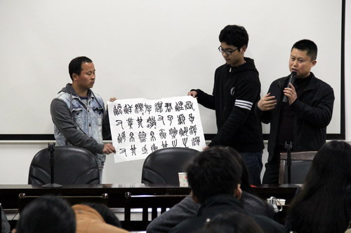 王书记在总结时说:这次讲座在于提高同学们对中国文字的敬畏和热爱,它不仅与我们的专业学习有关,更关乎着未来的发展。我们要增强对书法学习的意识,正如曹老师说的,我们眼中的文字是赋有生命的。