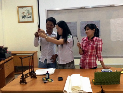 汉语教师志愿者教师薛欣玭和宋亚洲分别教授了中国书法和二十四式太极拳,一文一武、动静相宜。学员们参与积极性很高,用毛笔写中国字,练中国拳;部分学员们提出,中国文化体验活动要多多结合汉语学习会更好一些。
