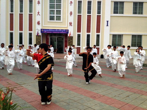 谢莫尼勒院长在活动现场发表了讲话,他指出,学会中国话,首先要了解中国文化;了解中国文化,会更利于汉语学习。通过今天的书法体验,知道中国字是象形字,记起来就更容易,也忘不了。学习武术,知道中国武术的行如风、坐如钟、站如松、卧如弓;学习中国武术,可以提高学习汉语的兴趣,又可强身健体。孔子学院欢迎柬埔寨的汉语和中国文化爱好者免费前来体验。