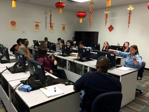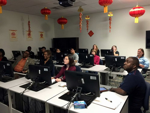 4月30日下午,美国萨凡纳州立大学孔子学院在学校图书馆二楼教室组织召开了九江学院和萨凡纳州立大学两校交换生经验交流座谈会。参加交流会的有萨凡纳州立大学孔子学院中方院长罗其娟、外方院长Peggy Blood、国际交流中心主任Emmanuel Nanuzeyi、孔子学院教师、两校交换生代表以及计划今年参加交换项目的萨凡纳州立大学学生近20人。