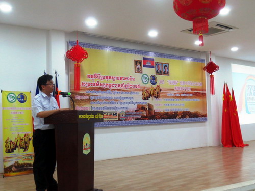檀勍生参赞在致辞时说,中文是世界上使用人数最多的语言,也是联合国6种正式工作语言之一。随着中国的发展,中文在国际上的使用也越来越广泛。中国和柬埔寨是传统友好国家,中柬是好邻居、好朋友、好伙伴、好兄弟。既然是邻居、是亲戚、是朋友,我们就应该语言相通,心灵相通。我希望同学们能学好中文,做好传承中柬友谊的使者。中国政府一直高度重视中国文化和语言的推广工作。我们在柬埔寨设立了孔子学院,每年选派优秀的志愿者老师,为柬埔寨汉语学习者提供服务。我们还在金边建立了中国文化之家,通过举办各种培训班和文化活动,方便大家学习了解中国文化。我们每年还为柬埔寨学生提供260多个中国政府奖学金名额。未来,我们还会不断加大投入,为大家了解和学习中国文化和语言提供全方位地支持。