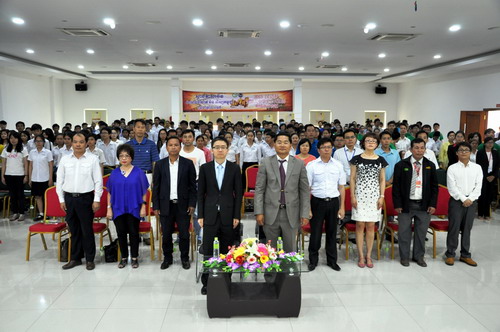 5月22日下午2时,第八届“汉语桥”世界中学生中文比赛柬埔寨赛区决赛在亚欧大学金色大楼礼堂隆重举行。中华人民共和国驻柬埔寨王国大使馆政务参赞檀勍生、柬埔寨教育青年体育部副国务秘书图维萨索阁下(H.E. Touch Visalsok)、柬埔寨王家研究院孔子学院院长谢莫尼勒(Chea Munyrith)出席并致辞。此次比赛规模之大,参赛选手水平之高都可堪称柬埔寨历届之最。