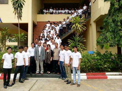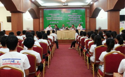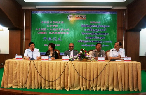 5月23日,柬埔寨王家研究院孔子学院柬埔寨人力资源有限公司(CAMHR)汉语班开班仪式在王家研究院礼堂举行。柬埔寨劳工与职业培训部副秘书长得成功(H.E. TES RUKHAPHAL)阁下,孔子学院院长谢莫尼勒阁下(H.E.CHEA MUNYRITH)、柬埔寨人力资源有限公司总经理倪海伦女士(HELEN NGA)出席并致辞,开班仪式由孔子学院中方院长帅式毅主持。