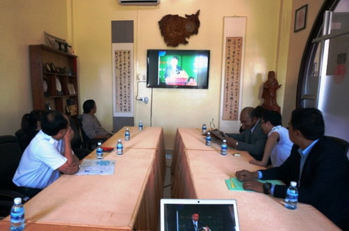 谢莫尼勒阁下介绍了孔子学院的发展情况,柬埔寨孔子学院自成立以来呈现良好地发展势头,教学点数量不断增大,范围越来越广。孔子学院的发展为中柬友好关系的发展奠定了重要的基础,是连接中柬友谊的桥梁纽带,希望越来越多的柬埔寨青年学生学习汉语,在促进中柬关系发展的同时为柬埔寨的社会发展做出贡献。