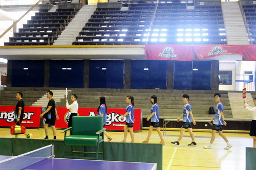 孔子学院乒乓球代表队六名选手以矫健与自信的步伐参加了开幕式以及入场式,希望在接下来比赛,他们将赛出风格、赛出水平,为柬埔寨王家研究院孔子学院争得荣誉,赢得良好的口碑。