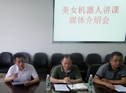 近日,我校信息学院张广顺研发团队研制的美女机器人小美老师为学生上课的消息,引发了省市媒体的关注。众多媒体记者纷纷要求来校采访报道。6月3日下午,党委宣传部和信息学院联合在厚德楼521召开“美女机器人媒体介绍会”,向媒体全面展示机器人小美讲课的风采和研发过程和体会。江西日报、江南都市报、信息日报、中国江西网、今视网、九江日报、九江广播电视台等省市媒体近20名记者及党委宣传部、信息学院相关领导、机器人研发团队成员参加了介绍会。党委宣传部副部长何桂林主持会议。