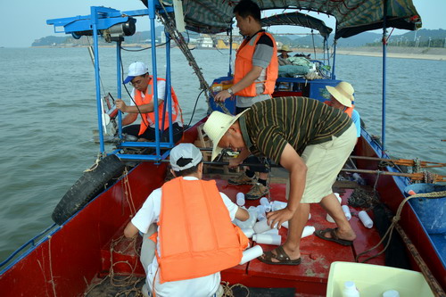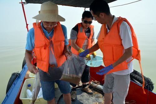 本次采样调查主要从(1)鄱阳湖底泥沉积物重金属污染,(2)鄱阳湖水文、泥沙及水生态现状,(3)鄱阳湖水体营养盐、颗粒物及沉淀物成分,(4)鄱阳湖浮游藻类群落分布状况、形态学特征及其与水质营养现状相关性,(5)鄱阳湖水体及底泥沉积物中微生物多样性等5个方面对鄱阳湖生态环境进行了实地取样调研。