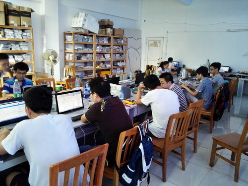 在校领导、学生处的关心支持下,电子工程学院师生们克服暑期天气炎热等不利因素,从7月1日开始到8月11日,先后安排8名教师对选拔的32名参赛队员开展为期42天的系列培训。培训期间,指导教师全天候坐班进行辅导答疑,帮组学生进行训练提高。同时对学生做好认真考勤,训练之余了解学生去向,确保学生在校安全。培训期间,虽然天气炎热、实验室条件有限,但是参赛同学乐观向上,纷纷表示,要利用这难得的机会,提高自己、证明自己、挑战自己。