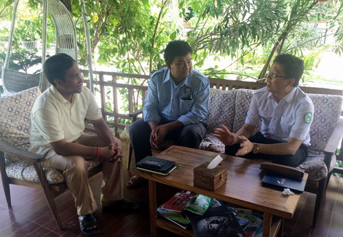 索速刚陪同代表团一行认真察看了茶胶省青年会会所、汉语教室、为孔子学院志愿者老师提供的住所及茶胶省的两所公立高中。双方经协商达成共识,2015年9月柬埔寨王家研究院孔子学院茶胶省汉语中心揭牌并开班。