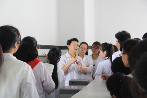 检验科何巍巍老师分理论教学和实验示范两部分,详细讲解了“活化部分凝血活酶时间测定”和“血浆凝血酶原时间测定”两个实验。何老师准备充分,条理清晰,深入浅出地进行授课,风趣幽默的语言吸引同学们聚精会神听讲,积极互动,课堂纪律良好。胡副院长对同学的实验操作进行指导,激发同学们的发散性思维,并亲切询问同学们在焕然一新的实验室的听课感受。同学们高兴地说,感觉很好,教室亮堂、宽敞,实验设备齐全。