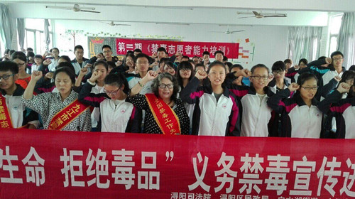 会上,谭会长主要介绍了吸毒的种种危害以及如何拒毒、防毒等方面的知识。随后,同学们纷纷上台发言,表达自己对毒品的认识和感触,坚定了自己决不沾染毒品的决心,并表示要把禁毒思想传递给更多人,让社会更加关注日益严重的毒品问题。最后,谭会长带领在场的志愿者们庄严宣誓,并与志愿者们共唱青年志愿者之歌。