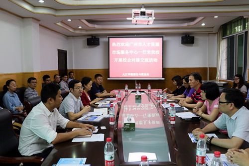 肖国丰处长代表学校热烈欢迎王主任、冯部长、邝帼智主任等一行来到历史文化名城九江,走进美丽的九江学院,并带来众多优秀企业与学校相关学院开展对接活动。肖处长介绍了学校的情况,介绍了毕业生生源基本情况,对于企业主动对接表示欢迎,并指出我校生源专业丰富,科类齐全,可以满足各类企业基本的聘用需求,并表示广州地理位置优越,只要企业有足够的诚意,相信学生会愿意应聘,一定会“下得去,用得上,留得住,干得好。”