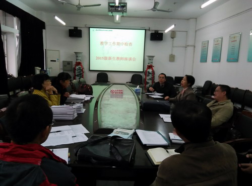为了解任课教师教学基本环节执行情况,加强教学管理,稳定教学秩序,做好教学质量监控,根据学校教学工作期中检查的要求,化环学院于第11周开展了本学期教学工作期中检查及新生任课教师座谈会活动。第10周,学院制定了本学期教学工作期中检查的工作安排;11月11日下午,学院曹小华副院长及教研科人员对2015新生任课教师的课程教学大纲、学期授课计划表、教案等教学文件及作业布置和批改情况进行了检查,并召开了新生任课教师的座谈会活动。