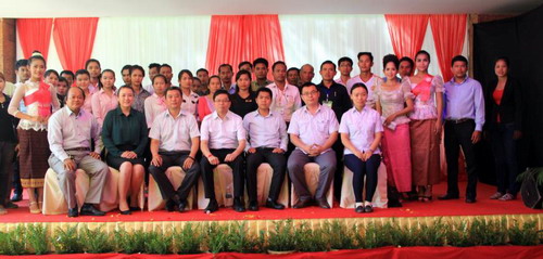 谢莫尼勒院长在致辞中指出,孔子学院自2004年成立以来,已经走过了11个春秋,如今在柬埔寨乃至全世界的影响力越来越大。柬埔寨王家研究院孔子学院自成立以来就得到了王国政府的大力支持和帮助。暹粒吴哥高中孔子课堂也始终与暹粒省政府保持着密切合作关系,我们在省政府开设了汉语官员班。近期,孔子学院在金边、暹粒、棉芷、马德望等多个省市举办了“一带一路”中国旅游文化节活动,在宣传中柬两国旅游文化方面做了大量工作,赢得了良好的社会声誉。如今到暹粒旅游的中国人已经跃居第一位,但会中文的有关服务业人员很少,能熟练掌握汉语的服务人员更是短缺,所以从今年4月份起,我们孔子学院陆续在吴哥免税店(CDF)、“吴哥的微笑”大剧院、柬埔寨民俗文化村等地开设汉语中心,来帮助有志于学习汉语的学员提高汉语水平,找到合适理想的就业岗位,以实现他们心中的梦想。同时,也希望广大学员在工作的同时,履行好“民间大使”的义务,为促进中柬两国政府及人民的友谊做出贡献。
