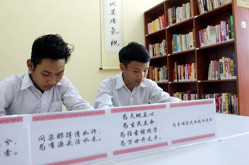 柬埔寨王家研究院孔子学院图书馆向学生开放借书