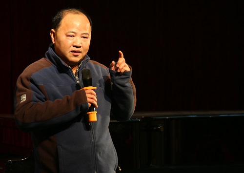 12月3日晚,艺术学院诚邀优秀校友,童心飞扬教育集团创办人、总裁李友建于香远楼一楼报告厅为师生们作了一场精彩的讲座。学院党委书记王春生、党委副书记沈杨、团委书记刘元明及辅导员老师与音乐学专业学生和全院学生干部近500人共同参加和聆听了此次讲座。讲座由沈杨副书记主持。
