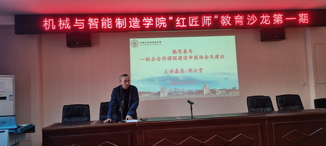 10月23日下午,机械与智能制造学院推出“红匠师”教育沙龙,并邀请学院机械电子教研室主任胡云堂副教授做客第一期“红匠师”教育沙龙。机械与智能制造学院全体专任教师,部分行政人员代表以及建筑工程与规划学院部分教师参加讲座。