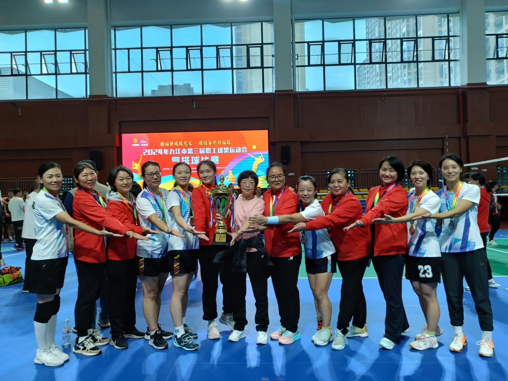 10月29日—31日,由九江市总工会主办、九江市气排球协会等协办的九江市第三届职工气排球比赛在九江浔南体育馆举行。我校教工女子气排球队顽强拼搏、奋力争先,通过小组赛、四分之一决赛、半决赛、决赛的激烈角逐,最终喜获亚军,为本次职工气排球比赛画上了圆满的句号。这是我校教工气排球队有史以来取得的最好成绩,充分展示了九江学院教职工良好的精神风貌和体育精神。