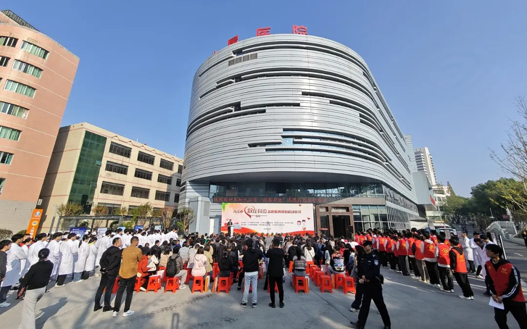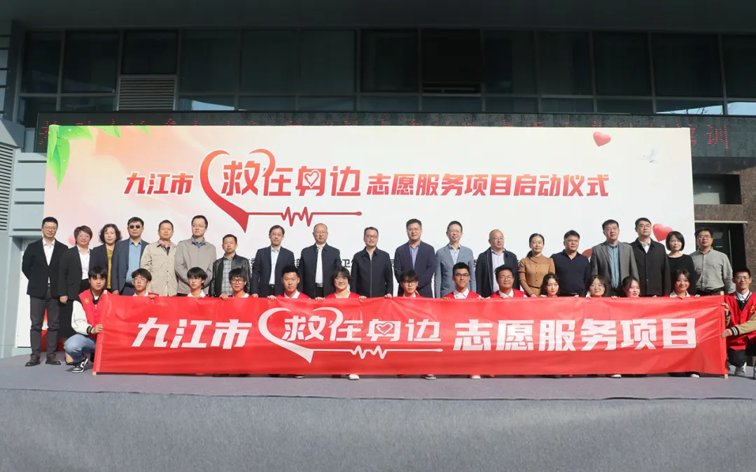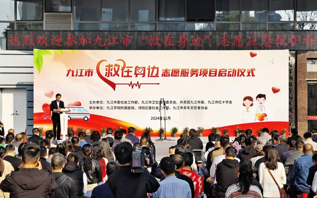 11月3日上午,由九江市委社会工作部、九江市卫生健康委员会、共青团九江市委、九江市红十字会、九江学院附属医院联合打造的九江市“救在身边”志愿服务项目启动仪式,在九江学院附属医院省级区域医疗中心前广场举行。