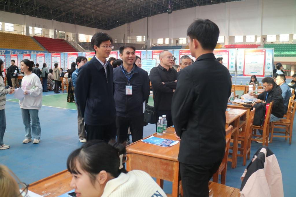为切实做好我校2025届毕业生就业工作,服务毕业生高质量就业,11月9日,由九江学院主办,招生与就业处、管理学院与经济学院联合承办、九江市就业创业服务中心协办的2025届毕业生联合专场招聘会在体育训练中心顺利举行。副校长查振华到招聘会现场指导,招生就业处负责人、经济学院、管理学院负责人参加。