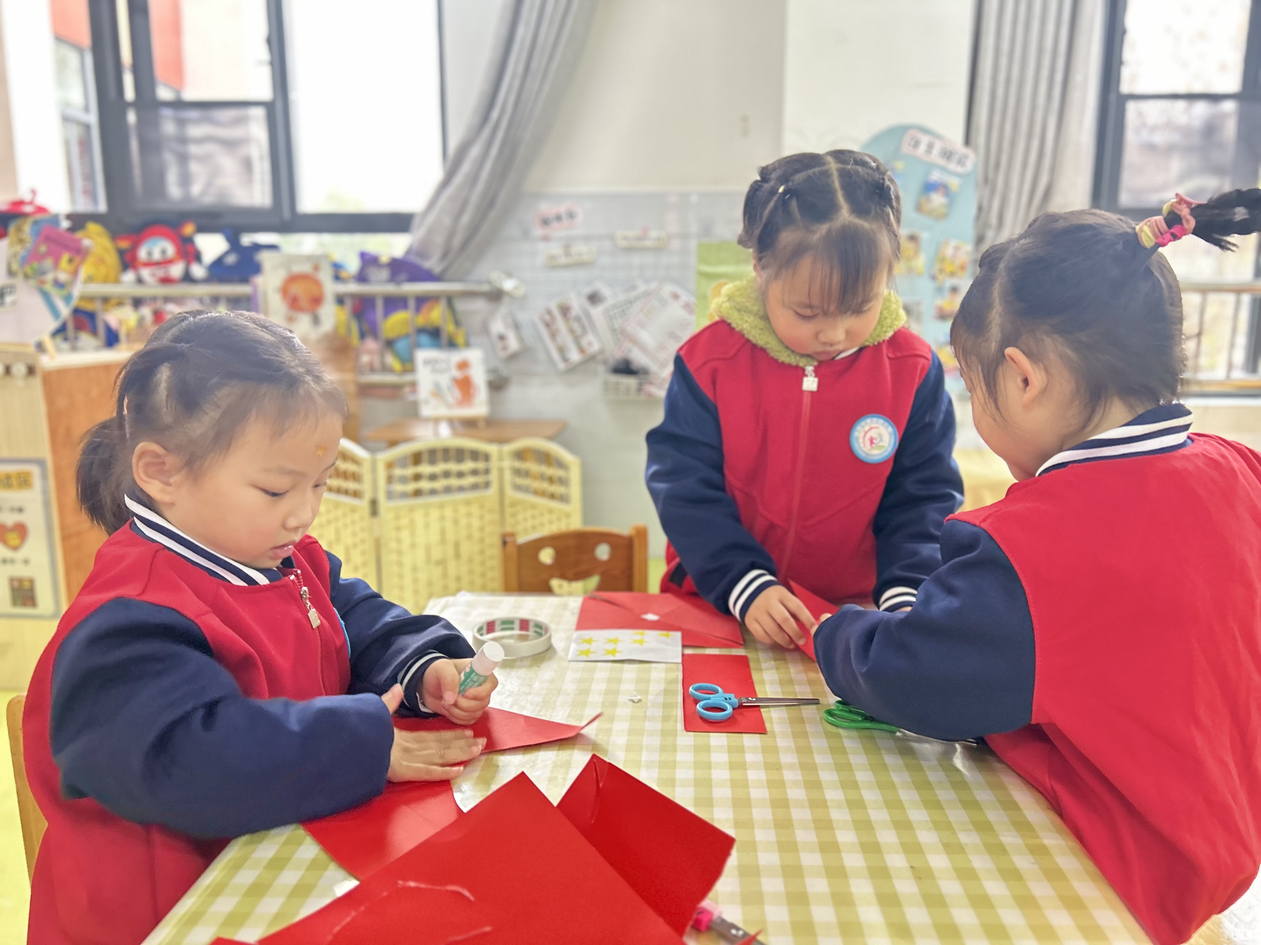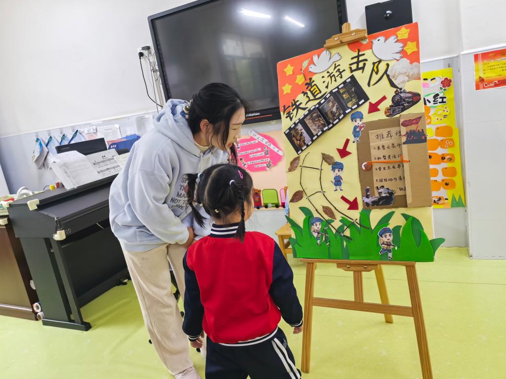 活动开始前,在四幼小小解说员的引导下,大家共同参观了幼儿园。九江学院的志愿者们带领四幼小朋友进行了“红色工坊”手工创作,在“红色英雄故事”展板区,志愿者们为幼儿讲述红色故事,将红色种子播撒进孩子心中。