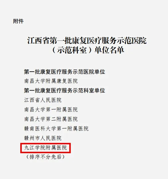 九江学院附属医院获江西省第一批康复医疗服务示范科室单位