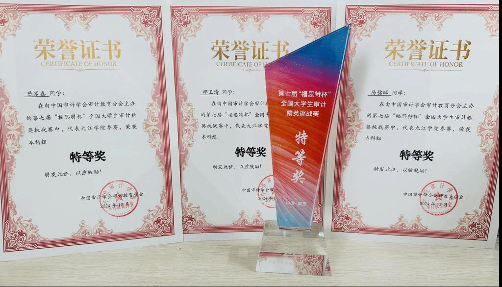 我校管理学院审计学专业陈家鑫、邵玉清、邓晶、虞璐嫣以及财务管理专业的陈铭晖同学在2024年的三大审计专业竞赛全国总决赛中取得了令人瞩目的优异成绩,连续为我校夺得三项特等奖。
