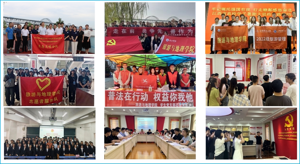 学院围绕国家战略与地方发展需要,以服务地方高质量发展为己任,教学相长、研学互促。“区域(城)村镇、产业经济、旅游发展规划设计团队”,高质量完成了“九江市旅游资源普查”“都昌县旅游发展总体规划”“九江市红色旅游发展规划”“九江市产业空间布局战略研究”“云南省产业空间优化布局”“武宁长水景区总体规划”等区域经济发展规划、区域旅游发展规划、乡村旅游景区设计、城镇发展规划等各类规划、方案100余项。“商务礼仪与文化传播团队”,积极开展地方文化研究,为九江市企事业单位、酒店、景区等开展礼仪、沟通、茶道、旅游营销、酒店服务等各类培训百余次,连续两年高水平完成九江市旅游产业发展大会讲解员培训服务。“遥感信息与国土空间规划设计团队”,完成“九江市浔阳区集体农用地和集体建设用地基准地价制定”“九江市全民所有自然资源资产所有权委托代理机制试点实施方案编制”等横向课题30余项。“江西传统村落研究团队”,深入200多座古村落,开展教科研、学生指导和古村活化等工作,获批国家级一流本科课程1门,省部级课题4项,出版专著3部,发表期刊论文10余篇,指导学生获省级赛事奖项4次,中国传统村落文化与实践课程虚拟教研室”获校级虚拟教研室建设立项。