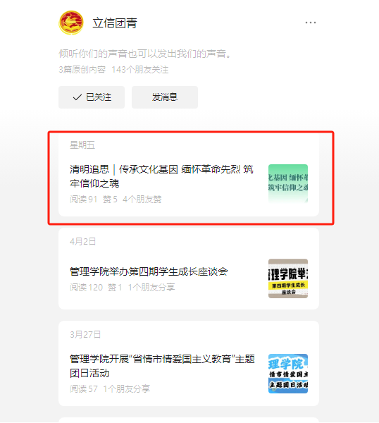 清明节期间,管理学院打造宣传矩阵,线上通过立信团青微信公众号发布《清明追思|传承文化基因缅怀革命先烈筑牢信仰之魂》推文,科普清明节起源、习俗,分享祭扫注意事项;线下组织学生创作清明节主题黑板报,从清明时节祭扫祖先、寄托哀思的场景,到“清明时节雨纷纷,路上行人欲断魂”的千古名句,再到介子推与寒食节的历史典故,丰富的内容让黑板报兼具文化性与趣味性,营造清明节日浓厚氛围。