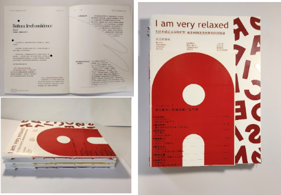 在书籍设计方面,同学们也是创意十足。《松弛感》采用双针锁线外封折叠函套的装帧方式,每册的锁线和视觉以不同颜色进行呈现,书籍内分别加入NFC音乐芯片和插入书签卡片赋予书册更多的趣味性和互动性。