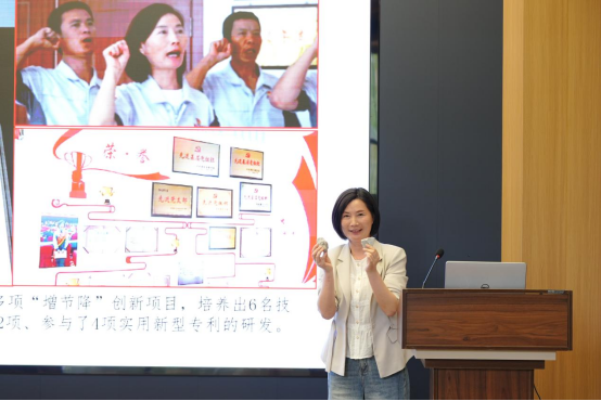在劳模宣讲环节,巨石集团九江钙业有限公司工艺员、党的二十大代表、江西省劳动模范赵小梅,九江石化运行四部焦化装置主操、全国五一巾帼标兵郭大为及其徒弟曾建芳,分别以《终身学习:一块石头的“点金”之路》《立足岗位,努力践行新时代产业工人使命》《匠心传承:严师慈心铺就石化成长路》为题诠释了奋斗的真谛。