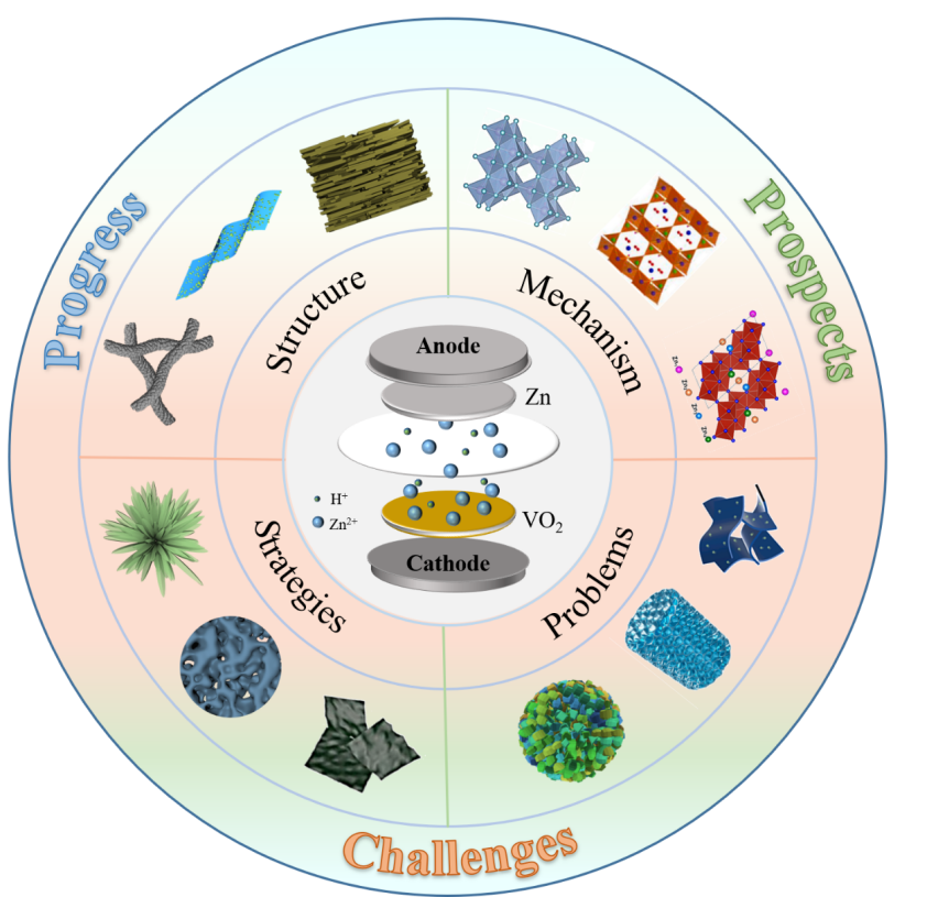 二氧化钒因其独特的物理化学性质,作为锌离子电池(AZIBs)的正极材料已被广泛研究,并展现出巨大的应用潜力。尽管二氧化钒具有诸多优势,但它也面临着与其他金属氧化物正极材料类似的挑战,例如结构稳定性差、循环性能下降以及活性位点的损失,这些因素共同限制了其在AZIB中的广泛应用。然而,对其研究进展、挑战和商业前景的全面系统分析仍然有限。本文重点阐述了二氧化钒晶体结构与锌离子储能性能之间的构效关系,深入探讨了其储能机制,并强调了其在能量转换和存储中的关键作用。