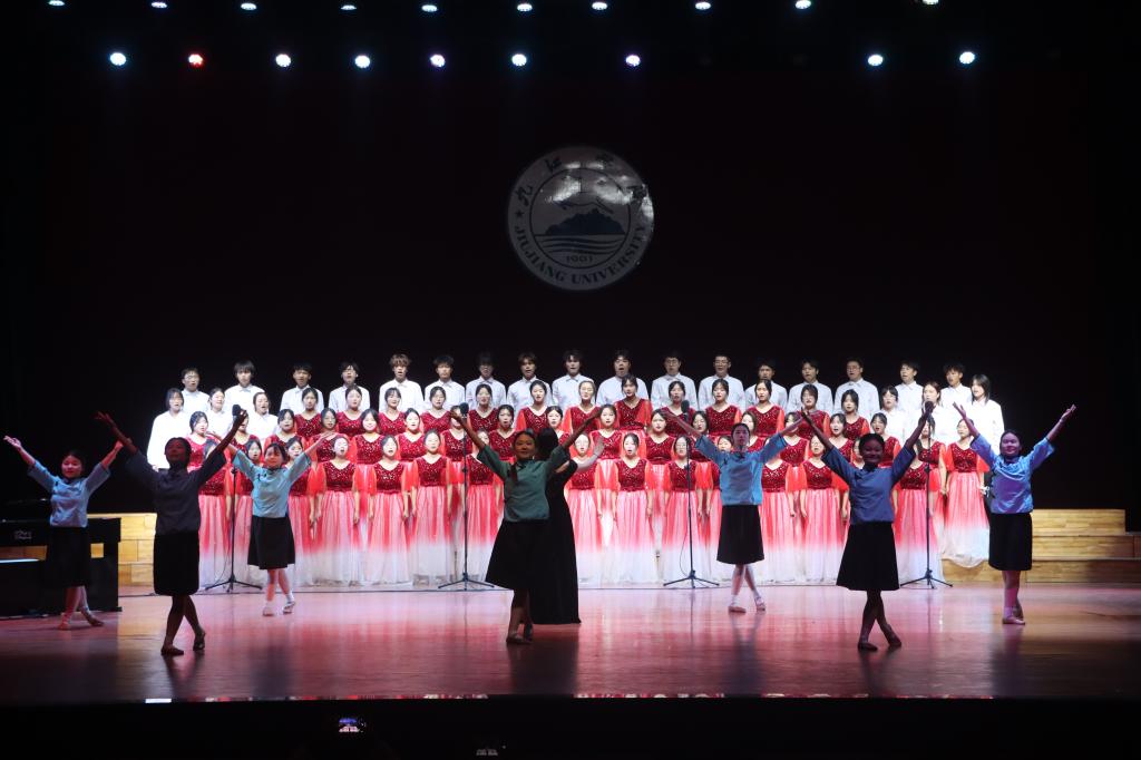 为深入学习贯彻落实党的二十大精神,进一步弘扬“爱国、进步、民主、科学”的五四精神,引领青年学子赓续红色血脉、勇担时代使命,4月27日晚,由九江学院学生工作处、团委主办的以“红歌铸魂·青春飞扬”为主题的五四青年合唱比赛在学校大礼堂举行。校党委委员、副校长吴维勇出席活动并为获奖单位颁奖。学校相关职能部门负责人、二级学院党政负责人、师生代表1000余人共同观看这场青春盛宴。