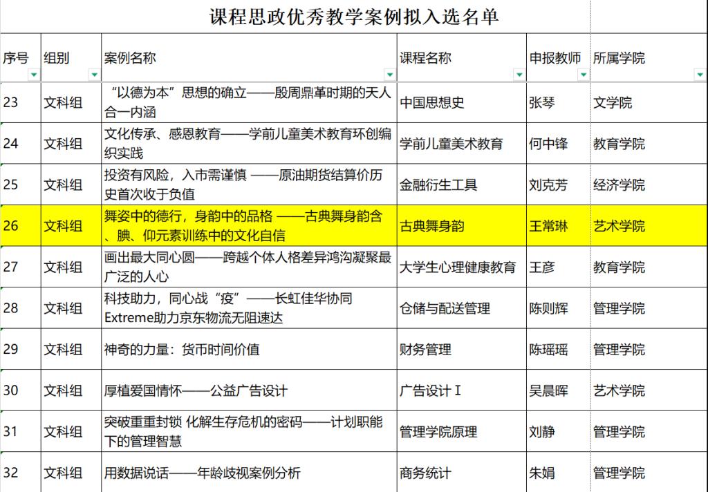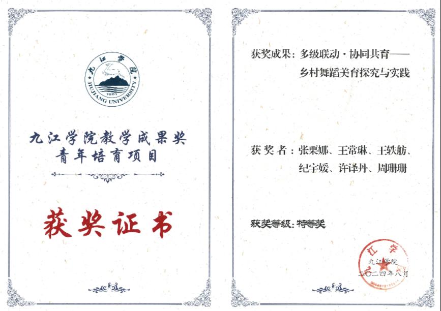 舞蹈学专业教师团队入选九江学院教学成果奖青年培育项目特等奖