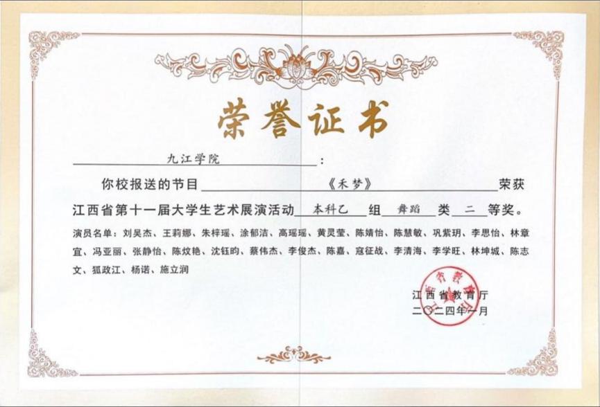 《禾梦》获江西省第十一届大学生艺术展演活动二等奖